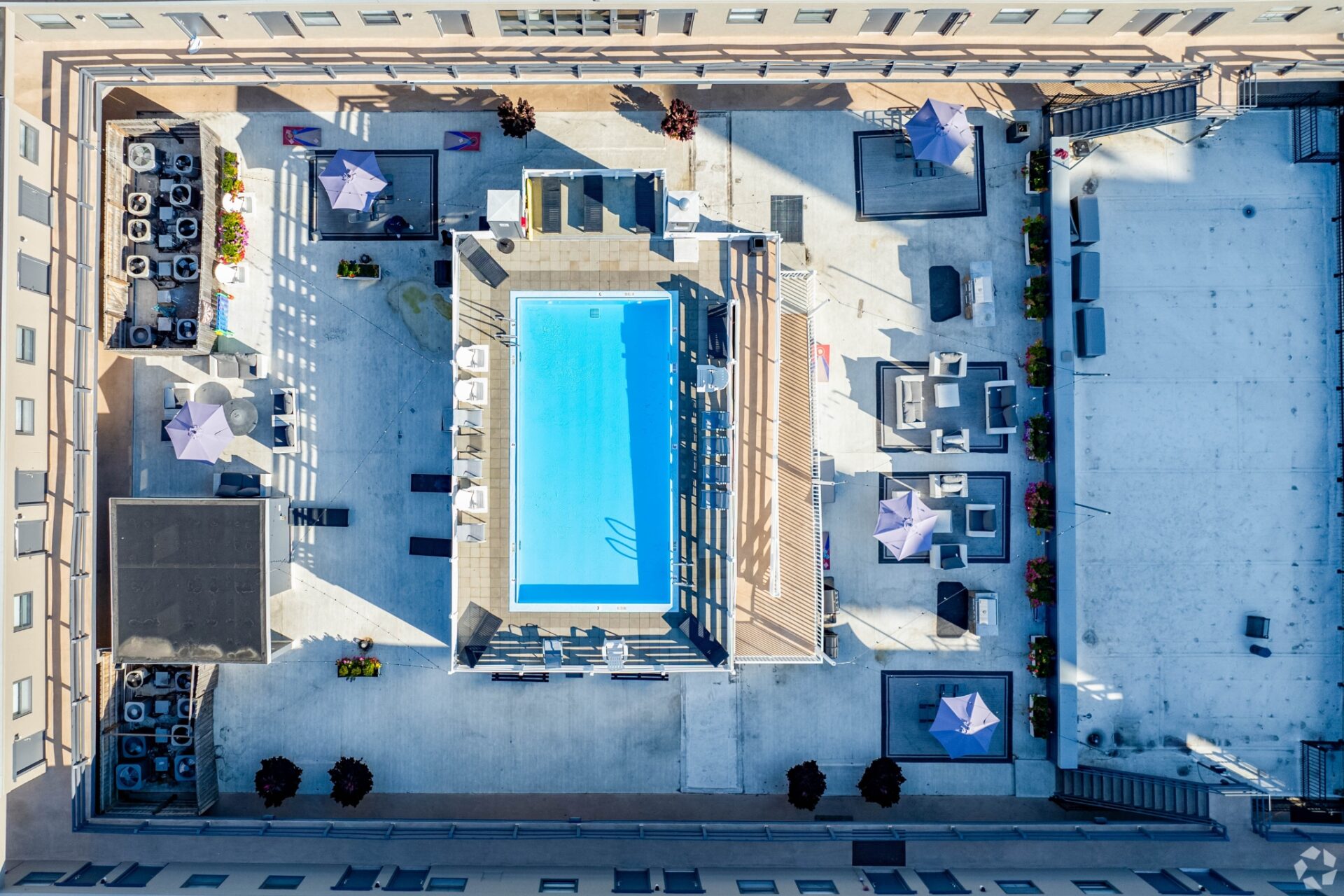 Elevate your downtown living experience with breathtaking views from our rooftop pool. Enjoy panoramic views of the city skyline as you relax and unwind. Take advantage of our comfortable lounge furniture and cozy seating pods strategically placed to maximize the stunning city views. Whether you’re hosting a barbecue with friends or enjoying a quiet evening under the stars, our rooftop provides the perfect setting for unforgettable moments.